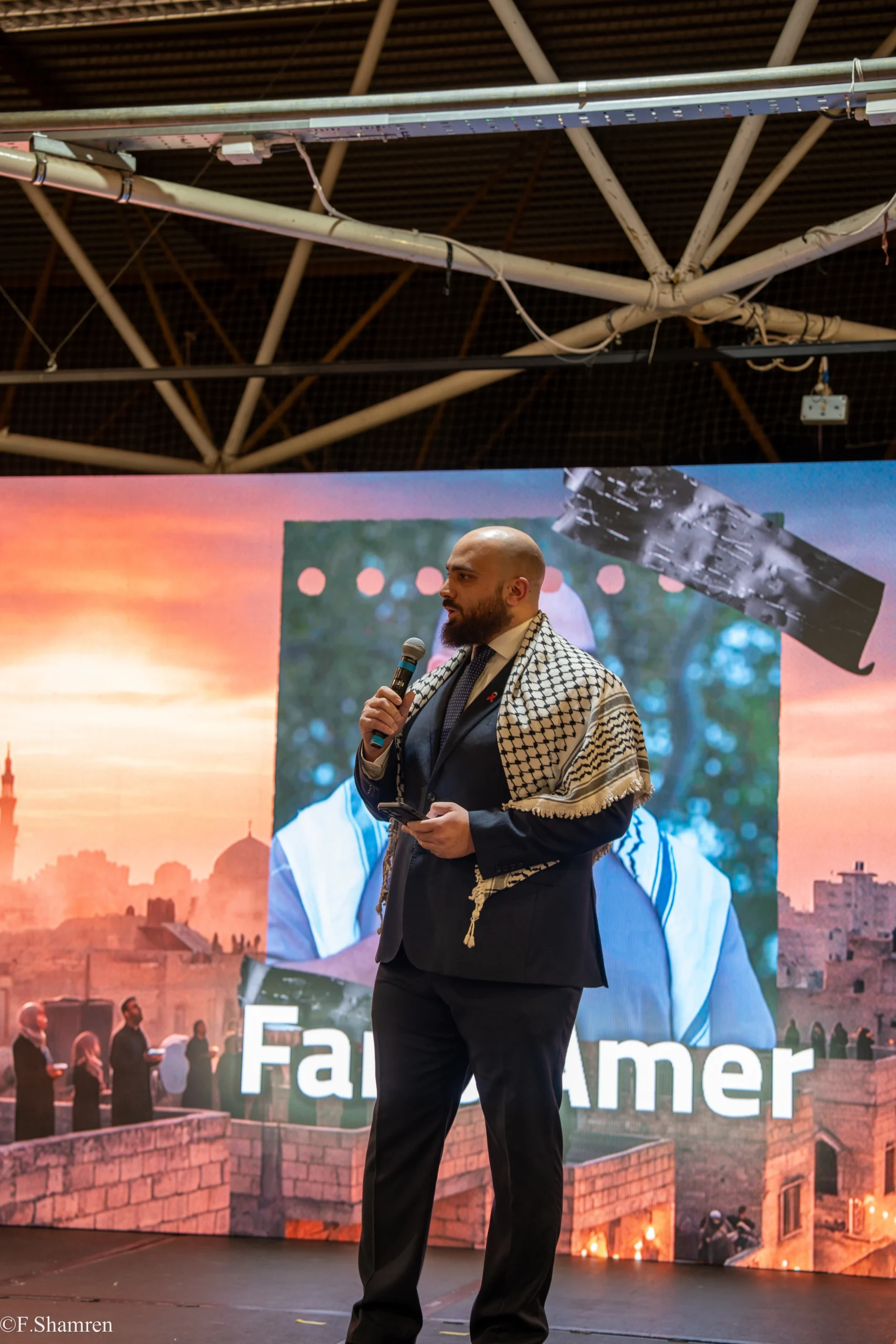 وفي كلمته التي ألقاها باسم المنتدى الفلسطيني في بريطانيا، استهل فارس عامر حديثه قائلًا: