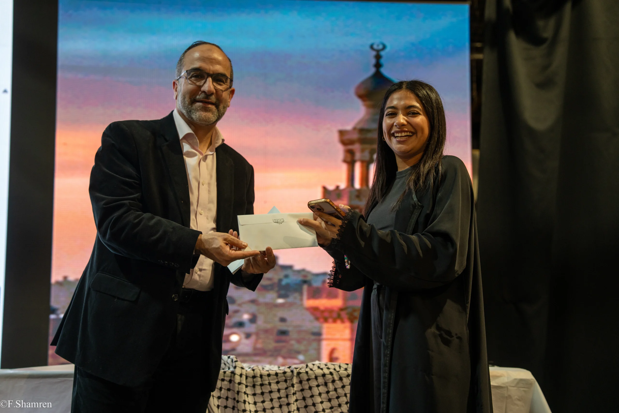 وشهد الحفل حضورًا حاشدًا تخطى 1100 مشارك من أبناء المجتمع العربي في بريطانيا، وأصدقاء فلسطين، ومناصري العدالة وحقوق الإنسان.