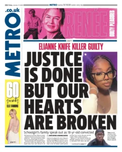 “تحققت العدالة ولكن قلوبنا محطمة” نشرت صحيفة مترو تصريحات مؤثرة لعائلة إليان أندام، الفتاة البالغة من العمر 15 عامًا، التي قُتلت على يد حسن سينتامو (18 عامًا) بسبب خلاف على دمية دب. وأشارت الصحيفة إلى أن سينتامو أظهر مشاعر مختلطة أثناء صدور الحكم، إذ بكى ورفض الجلوس في القاعة.