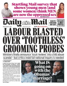 “انتقادات لحزب العمال بشأن ضعف التحقيقات في قضايا الاستغلال” وجهت ديلي ميل انتقادات لحزب العمال؛ بسبب إعلانه خمس مراجعات محلية لقضايا عصابات الاستغلال الجنسي، بدلًا من إجراء تحقيق وطني شامل، ما أثار استياء واسع النطاق بين الناشطين والمجتمع.