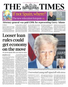 “تخفيف قواعد القروض قد يُحرك الاقتصاد” كشفت التايمز أن الجهات التنظيمية المالية تدرس تخفيف قواعد القروض العقارية، ما سيسهل على المشترين للمرة الأولى دخول سوق الإسكان. كما تضمنت الصحيفة صورة للرئيس الأمريكي المنتخب دونالد ترامب قبل تنصيبه الأسبوع المقبل.