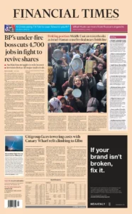 “مدير BP يواجه الضغوط ويلغي 4,700 وظيفة لإنعاش الأسهم” تناولت الصحيفة قرار شركة (BP) بخفض أكثر من 5 في المئة من قوتها العاملة، في محاولة من مديرها التنفيذي لتقليل التكاليف وإنعاش أسهم الشركة التي تراجعت مقارنة بمنافسيها. كما ركزت على الوضع المتوتر في الشرق الأوسط مع اقتراب اتفاق الهدنة بين إسرائيل وحماس.