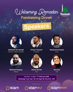 تنظّم مؤسسة “Teebah Foundation” الخيرية حفل عشاء خيري ترحيبًا بشهر رمضان المبارك، في أمسية تضامنية تهدف إلى دعم النساء السوريات والأيتام في المخيمات.