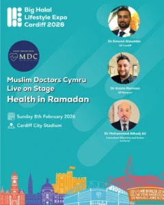 وضمن فعاليات المعرض، يقدّم فريق Muslim Doctors Cymru جلسة مباشرة على المسرح بعنوان “الصحة في رمضان”، تتناول جوانب صحية مرتبطة بالصيام، مع إضاءات عملية تساعد على الحفاظ على الصحة خلال الشهر الكريم.