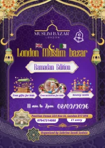 يُقدم سوق رمضان مع مسجد شرق لندن تجربة فريدة من نوعها للاحتفاء بروح رمضان المبارك، حيث يجمع السوق بين الأطعمة التقليدية والحرف اليدوية والمنتجات الفريدة في أجواء تفاعلية مليئة بالنشاطات الثقافية والاجتماعية. يمكن للزوار التجول بين الأكشاك، تذوق المأكولات الرمضانية، واكتشاف منتجات محلية وتقليدية قبل حلول الشهر الكريم، ما يجعله مناسبة رائعة للعائلات والأصدقاء للاستعداد لشهر رمضان بروح الفرح والمشاركة المجتمعية