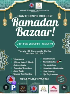 يستعد مجتمع دارتفورد لاستقبال واحد من أكبر فعاليات رمضان العائلية، في بازار مفتوح يجمع التسوق والطعام والأجواء الرمضانية في مكان واحد. الحدث تنظمه مدرسة الهُدى بالتعاون مع The Shopping List، ويضم عشرات الأكشاك التي تقدم منتجات متنوعة تناسب العائلة كلها، مع تخصيص ريع الفعالية بالكامل للتبرعات.