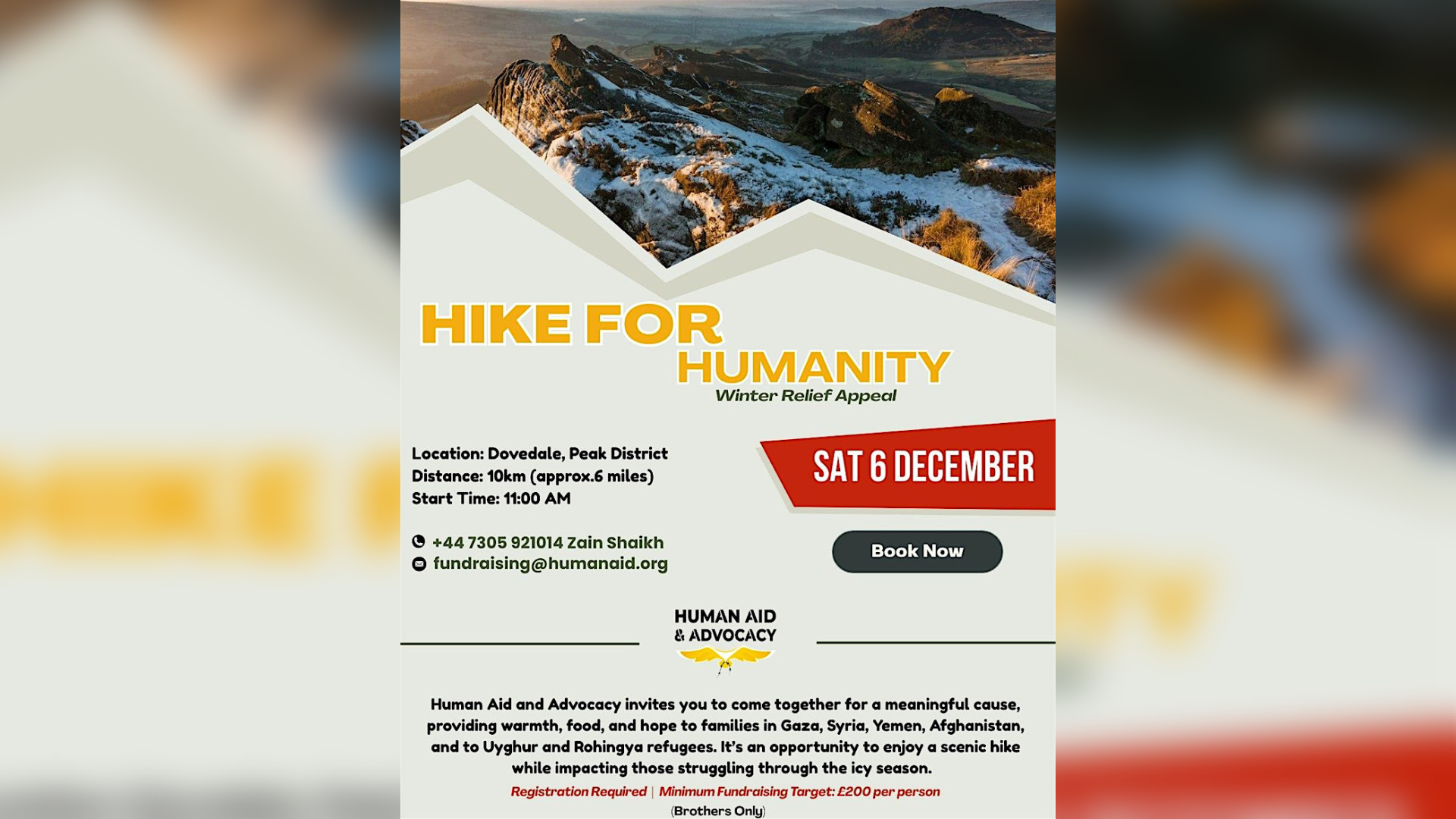 مسير خيري في منطقة Dovedale يجمع التبرعات لدعم الأسر المتضررة في غزة وسوريا واليمن وأفغانستان، مع هدف فردي لجمع £200 لكل مشارك.