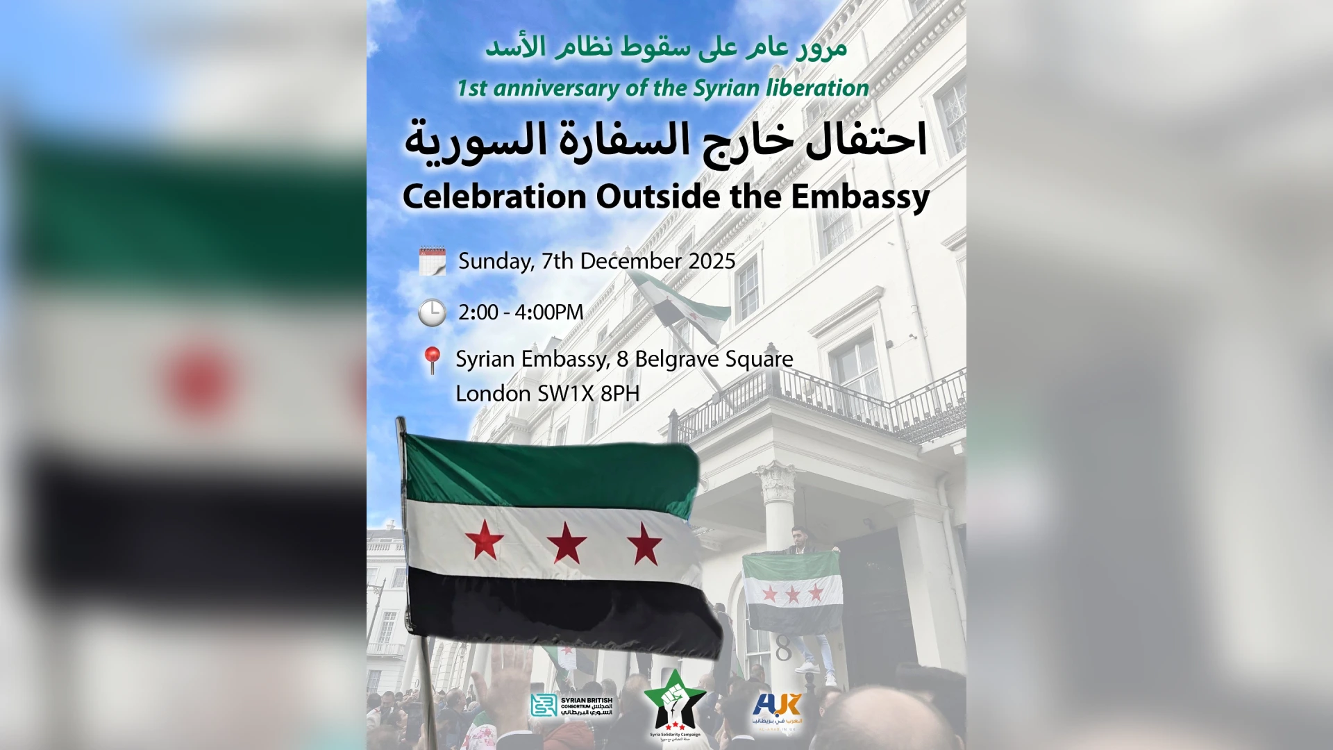 احتفالية أمام السفارة السورية في ذكرى انتصار الثورة