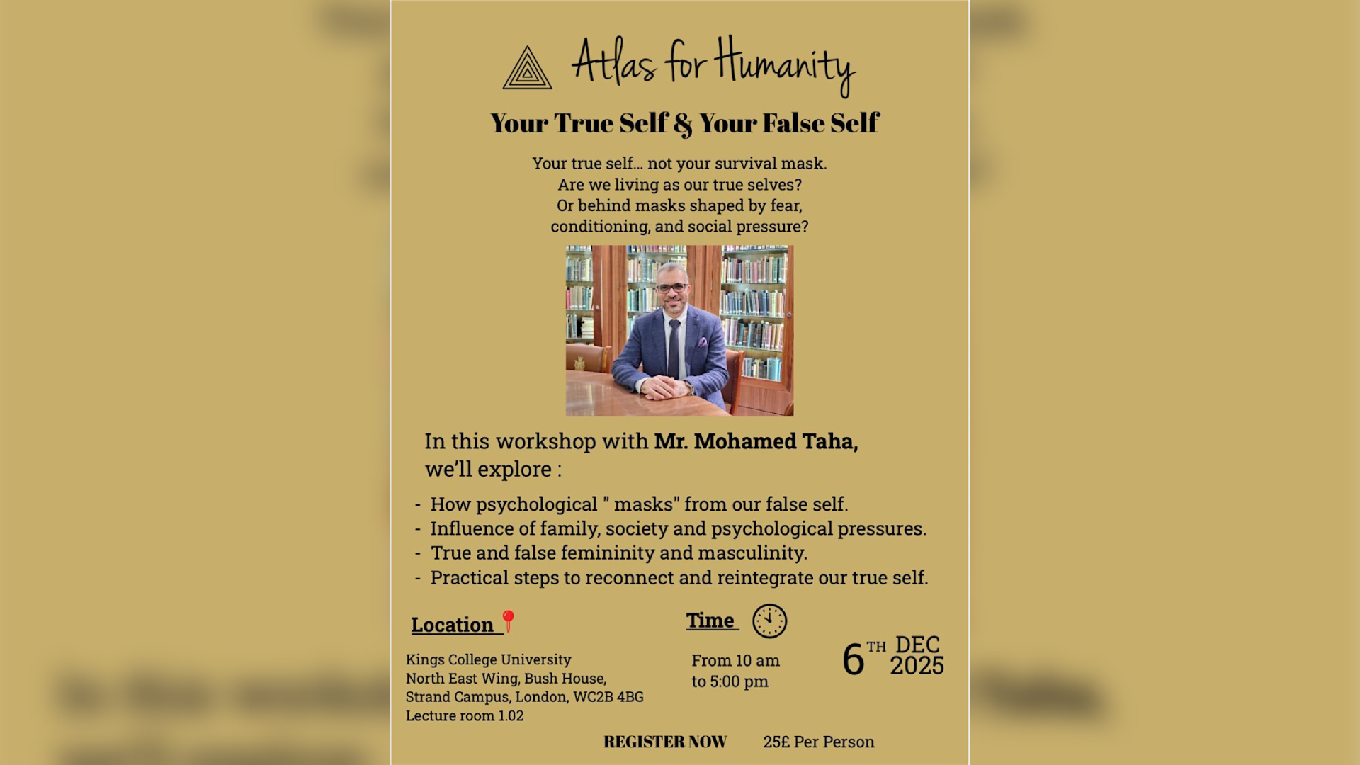 ورشة “ذاتك الحقيقية وذاتك الزائفة” مع محمد طه (بالعربية)