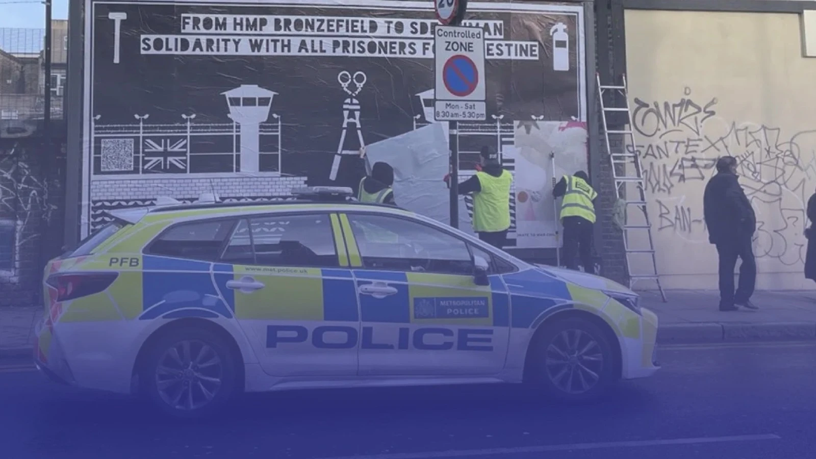 في واقعة أثارت جدلًا واسعًا حول حدود حرية التعبير وطبيعة الحياد الشرطي في بريطانيا، تدخلت عناصر من شرطة العاصمة لندن لإزالة لوحة إعلانية بارزة في أحد شوارع المدينة، حملت رسالة تضامن مع السجناء السياسيين في كل من بريطانيا وإسرائيل، ما فتح باب اتهامات مباشرة بـ«الرقابة السياسية» وازدواجية المعايير في التعامل مع التعبير المرتبط بالقضية الفلسطينية.