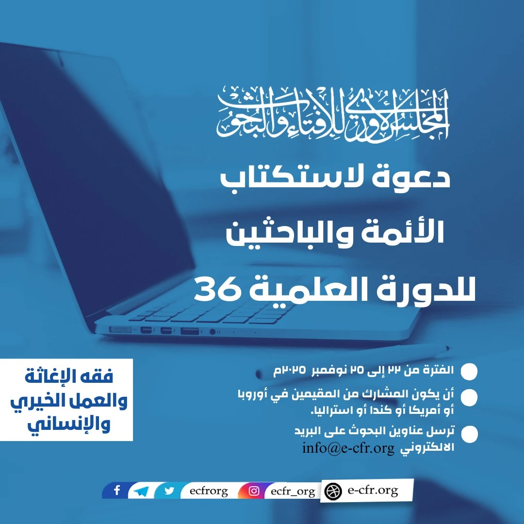 أعلن المجلس الأوروبي للإفتاء والبحوث عن عقد دورته العلمية السادسة والثلاثين في مدينة أورفا التركية بين 22 و25 نوفمبر/تشرين الثاني 2025، تحت عنوان “فقه الإغاثة والعمل الخيري والإنساني”، داعيًا الأئمة والدعاة والباحثين المقيمين في أوروبا وأمريكا وكندا وأستراليا إلى المشاركة بأبحاثهم العلمية.