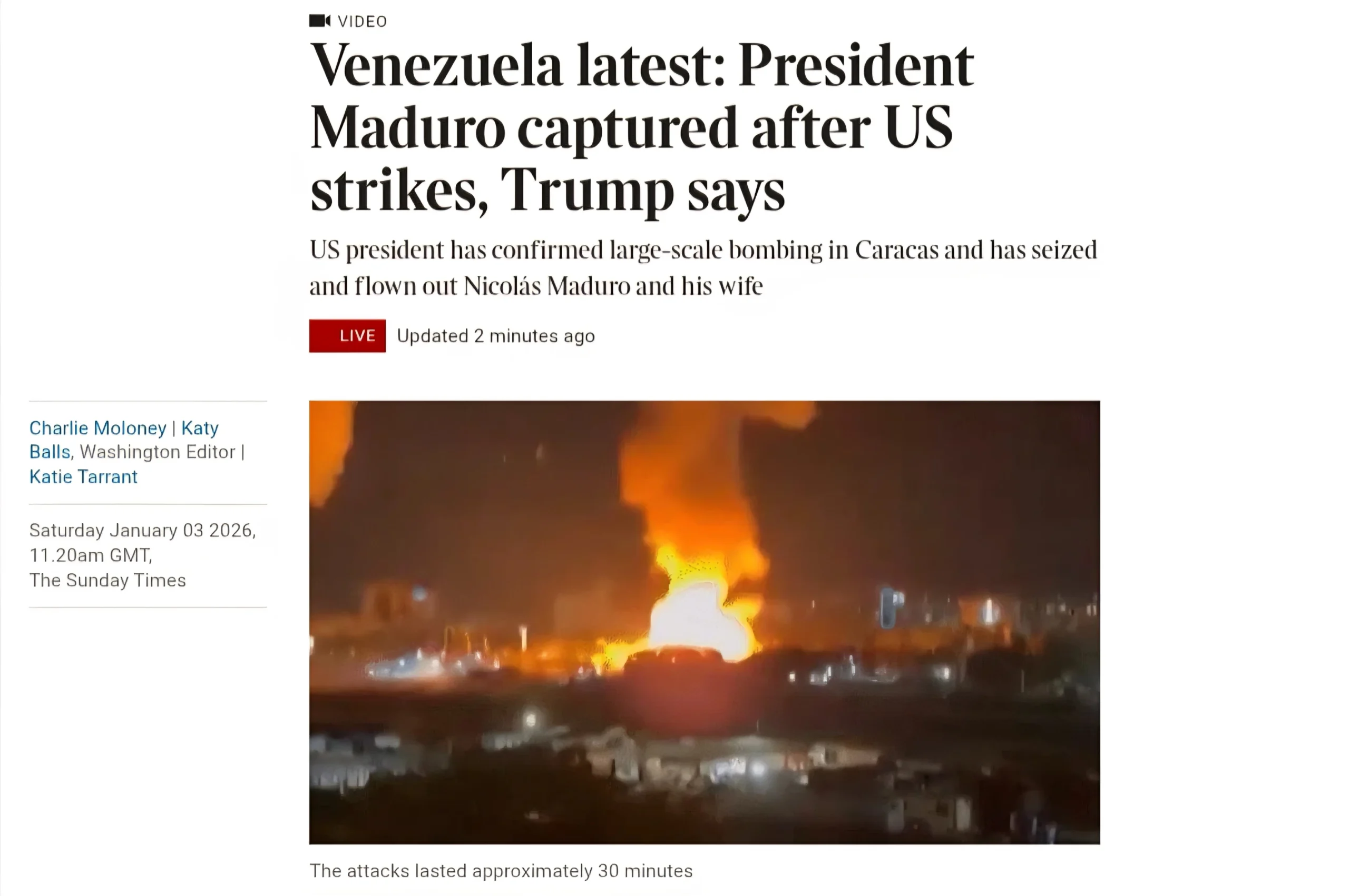 في ساعات قليلة، وجدت فنزويلا نفسها في صدارة التغطية الإخبارية البريطانية، بعد تطورات وُصفت بأنها من الأكثر دراماتيكية في تاريخ أميركا اللاتينية الحديث. حدثٌ صادم أعاد إلى الأذهان نماذج قديمة من التدخلات الخارجية، وطرح أسئلة ثقيلة حول الشرعية، والسيادة، وحدود القوة في النظام الدولي المعاصر.