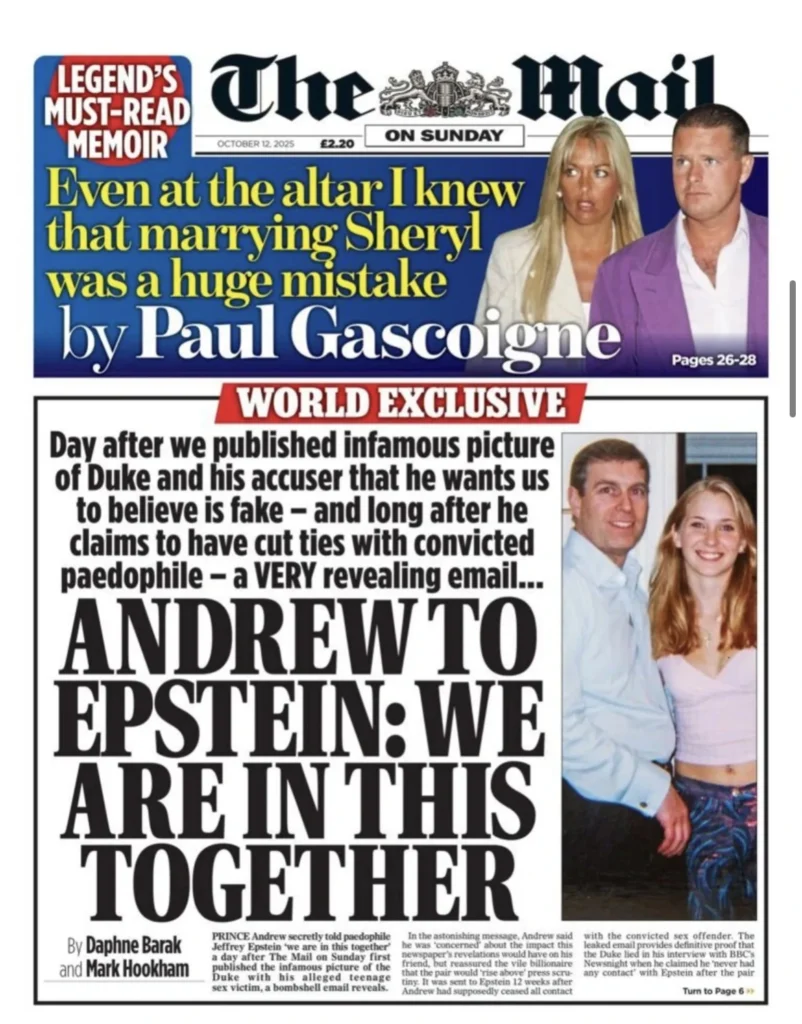رسائل بريد إلكتروني تعود لعام 2011 تُظهر دوق يورك وهو يكتب للمدان الراحل جيفري إبستين: “نحن في هذا معًا”، في تناقض مع نفيه خلال مقابلة على “بي بي سي نيوزنايت” عام 2019 لأي تواصل بعد ظهورهما في نيويورك عام 2010.