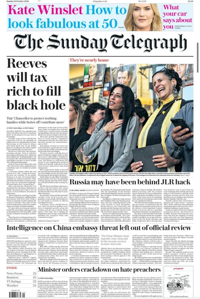 مصدر في الخزانة يؤكد أن “الأكثر ثراءً” سيُطلب منهم “المساهمة أكثر” ضمن قرارات وُصفت بأنها “صعبة”، مع نفي العودة إلى نهج التقشف. الصفحة تتضمن صورة لأقارب رهائن إسرائيليين يُفترض الإفراج عنهم يوم الاثنين.