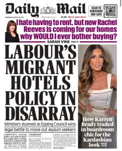 حملت الصحف البريطانية الصادرة صباح اليوم مزيجًا من الملفات الداخلية والدولية التي تعكس حجم الارتباك السياسي في لندن والتوترات المستمرة في المشهد العالمي. فقد هيمن حكم المحكمة العليا بشأن فنادق المهاجرين على الصفحات الأولى، باعتباره ضربة جديدة لسياسات اللجوء الحكومية، في حين انشغلت صحف أخرى بخطط ضريبية مثيرة للجدل تقودها وزيرة المالية ريتشل ريفز. وعلى الصعيد الدولي، برزت تصريحات الرئيس الأمريكي دونالد ترامب بشأن أوكرانيا، إلى جانب أخبار اجتماعية وثقافية خفيفة، مثل عودة الأخوين غالاغر بعد قطيعة استمرت 15 عامًا.