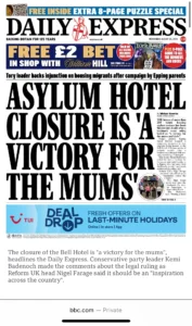 اعتبرت أن إغلاق الفندق يشكل “انتصارًا للأمهات”، ناقلة تصريحات كيمي بادنوك ونايجل فاراج اللذين رأيا في الحكم مصدر إلهام لبقية البلاد.