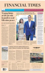 عنونت: “ترامب يلمّح إلى دور جوي أمريكي لدفع السلام في أوكرانيا”، محذّرة من “وضع صعب” قد يواجه الكرملين. كما نشرت صورة لرئيس الوزراء الإسباني وزوجته بعد اتهامها باختلاس أموال عامة.