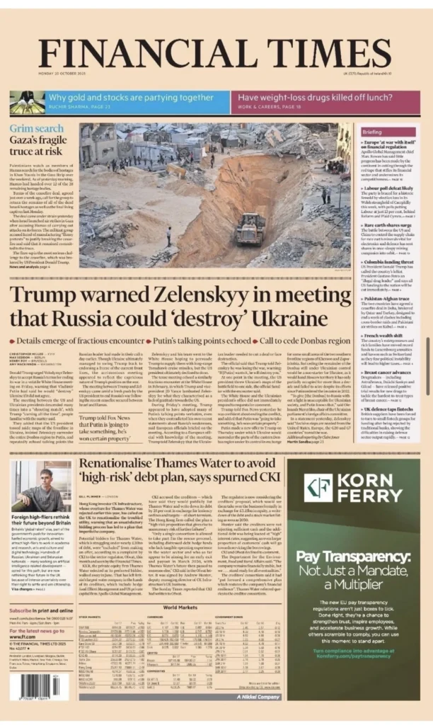 صباحٌ مزدحم بالعناوين في لندن: تحقيق لشرطة العاصمة يطوّق الأمير أندرو من جديد، وهدنةٌ في غزة على حافة الانهيار، ولقاءٌ «عاصف» في البيت الأبيض بين دونالد ترامب وفولوديمير زيلينسكي. فيما يأتي عرضٌ مهني يلتزم الدقة والتوازن ويعرض ما نشرته كل صحيفة على حدة دون خلط.