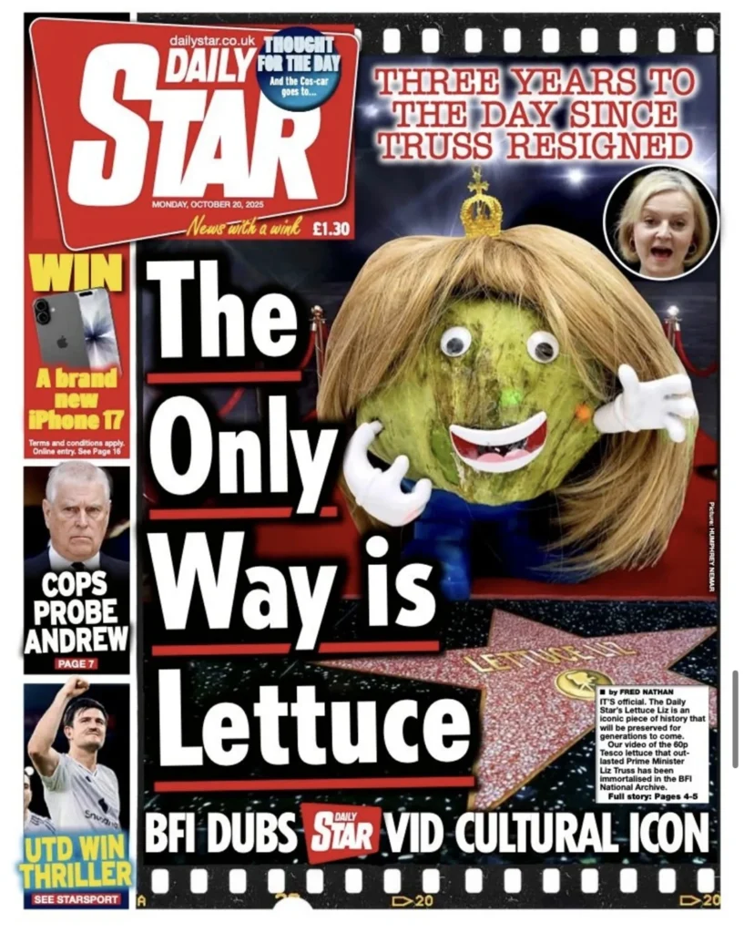 تتفرّد بخبر ثقافي طريف: معهد الفيلم البريطاني (BFI) أدرج «بثّ الخصّة» الشهير، الذي سخر من قِصر المدة التي قضتها ليز تراس في رئاسة الحكومة ضمن أرشيفه الوطني، بعد ثلاث سنوات على استقالتها.