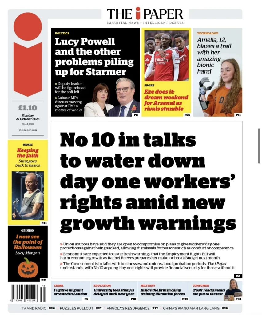 أبرز عناوين الصحف البريطانية ليوم الإثنين الموافق 27 أكتوبر 2025