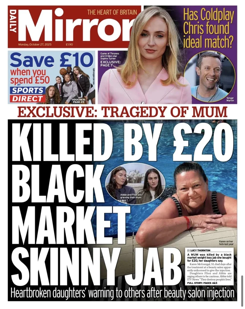 قصة عن أم «قضت بسبب حقنة تخسيس من السوق السوداء ثمنها 20 باوند». ابنتا كارين مكونيغال توجهان تحذيرًا للآخرين من «حقن التجميل» غير المرخّصة.