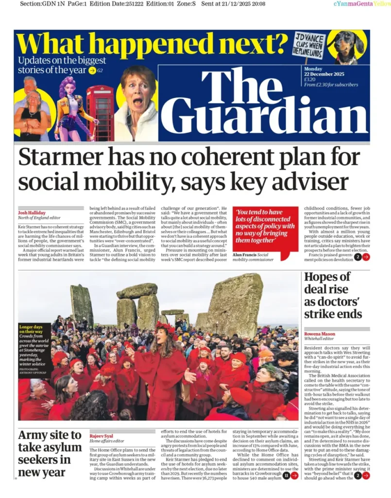 أبرز عناوين الصحف البريطانية ليوم الإثنين 22 ديسمبر 2025