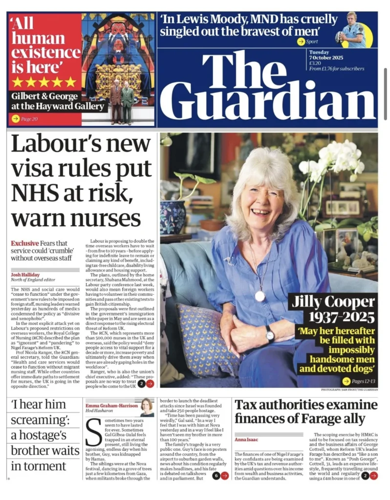 أبرز عناوين الصحف البريطانية ليوم الثلاثاء الموافق 7 أكتوبر 2025