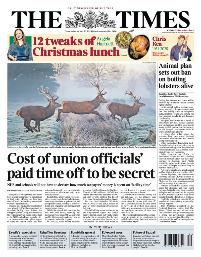 أبرز عناوين الصحف البريطانية ليوم الثلاثاء 23 ديسمبر 2025