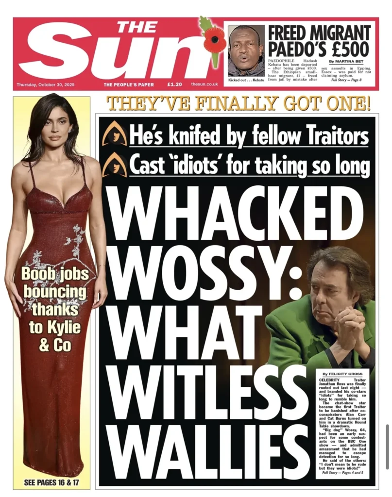 انفردت الصحيفة بالإشارة إلى «حذف» جوناثان روس في برنامج «ذي سيليبرتي ترايترز»، مع لهجة احتفالية بكشف إحدى شخصيات «الخائن».