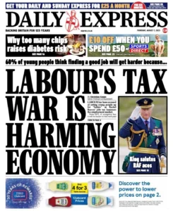 حذّرت الصحيفة من أنّ “حرب الضرائب” التي تقودها المستشارة رايتشل ريفز تؤذي الاقتصاد وتضرب سوق العمل، مشيرة إلى أن 69٪ من الشباب يعتقدون أن العثور على وظيفة جيدة بات أكثر صعوبة في ظل السياسات الضريبية الجديدة.