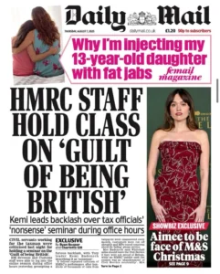 هاجمت موظفي مصلحة الضرائب لعقدهم ندوة بعنوان “ذنب كونك بريطانيًا”، وقالت زعيمة المحافظين كيمي بادينوك إن من لا يشعر بالفخر الوطني لا مكان له في الخدمة المدنية.