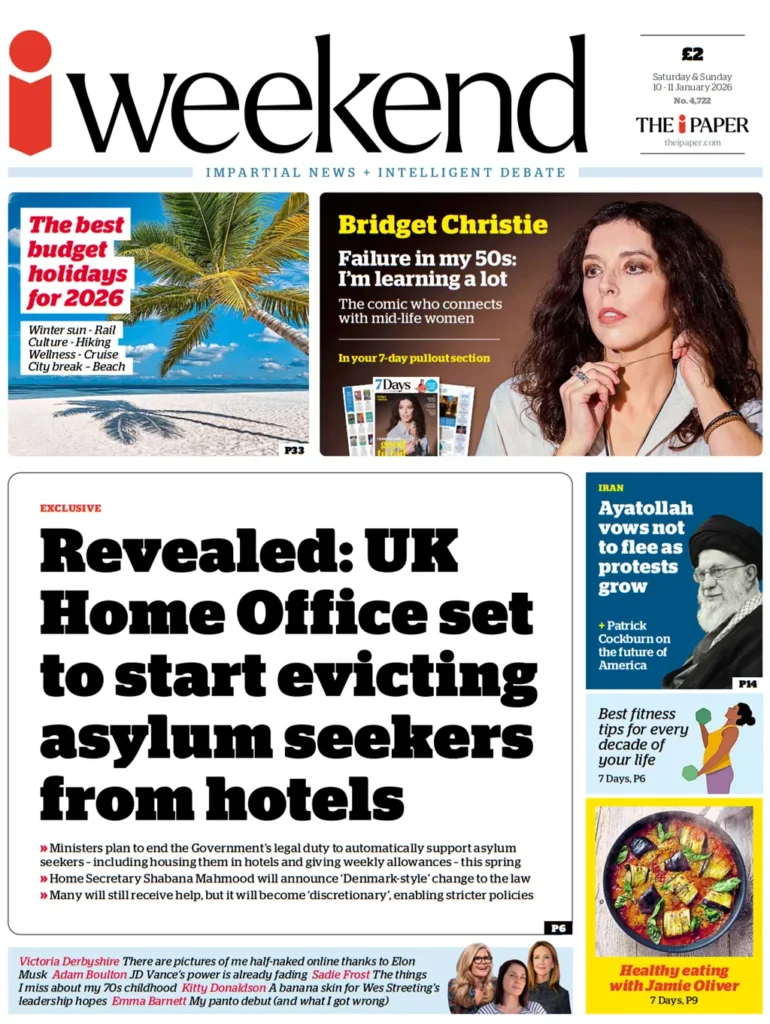 وفي ملف الهجرة واللجوء، أفادت آي بأن وزارة الداخلية البريطانية تستعد لبدء إخراج طالبي اللجوء من الفنادق؛ تمهيدًا لتشريع جديد متوقع في الربيع.