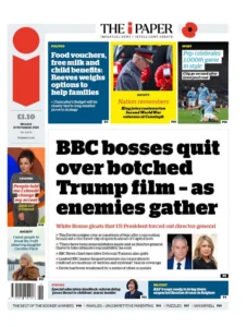 كتبت الصحيفة: “رؤساء الـBBC يستقيلون بسبب الفيلم الفاشل عن ترامب، بينما يتجمع الخصوم”. وأشارت إلى أن البيت الأبيض عبّر عن ارتياحه، معتبرًا أن ترامب “نجح في إجبار قيادة الـBBC على الاستقالة” بعد الجدل الذي أثارته طريقة عرض الفيلم الوثائقي.