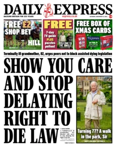 اختارت ديلي إكسبريس قصة إنسانية لصفحتها الأولى، حيث توجهت امرأة مصابة بمرض عضال بنداء لإقرار قانون “الحق في الموت”، قائلة: “أظهروا اهتمامكم وتوقفوا عن تأجيل القانون”.