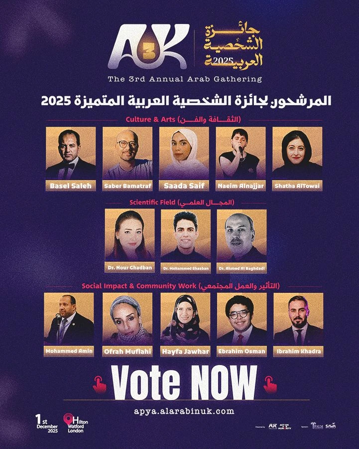 من خلال هذه الفعالية، تُجدد منصة العرب في بريطانيا (AUK) التزامها بدعم الأصوات العربية الملهمة في المهجر، وإبراز قصص النجاح التي تُعيد رسم صورة العرب في المجتمع البريطاني بروح من الفخر والمسؤولية والعطاء.