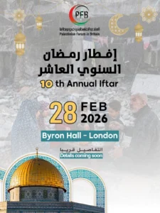 يقيم المنتدى الفلسطيني في لندن إفطارًا رمضانيًا سنويًا في بايرون هول، ويعد هذا الحدث فرصة للتواصل الاجتماعي وتعزيز الروابط المجتمعية بين الجاليات الفلسطينية والعربية، بالإضافة إلى دعم المبادرات الثقافية والخيرية في المجتمع.