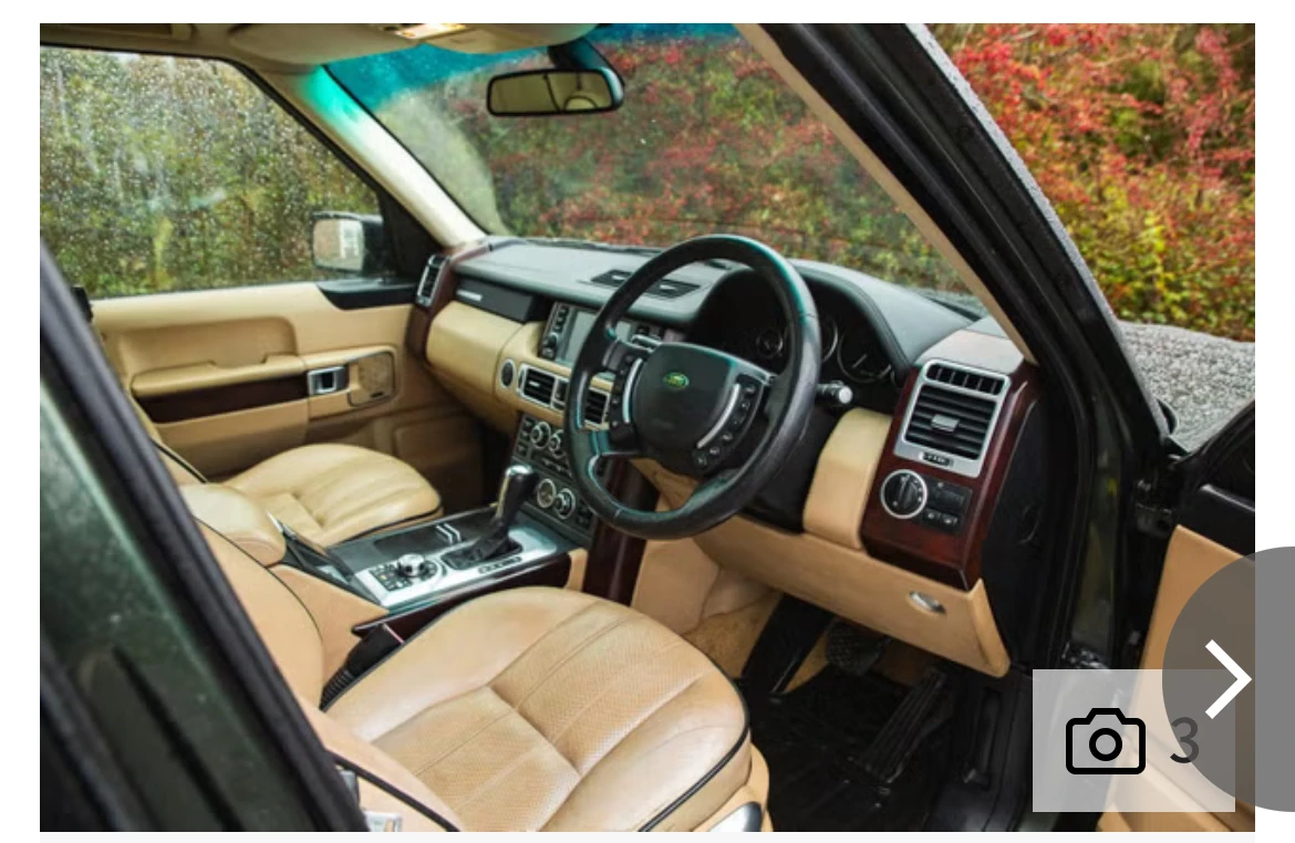 السيارة من طراز رينج روفر فوغ SE سنة 2007، ومزوّدة بمحرك ديزل TDV8 سعة 3.6 لتر، وقطعت نحو 120 ألف ميل. الطلاء الخارجي بلون «تونغا» الأخضر المعدني، وتضم تجهيزات غير مألوفة في هذا الجيل مثل مساند إمساك خلفية وحاجز كلاب في صندوق الأمتعة، إلى جانب نظام ترفيه خلفي وهاتف مدمج جرى توفيرهما بقطع أصلية من لاند روفر. بحسب دار Iconic Auctioneers، يُقال إنّها السيارة الديزل الوحيدة بهذه المواصفات اللونية ضمن أسطول الملكة في ذلك الجيل. بعد الخدمة الملكية انتقلت السيارة إلى ملكية خاصة وقضت فترة في إسبانيا حيث تضرر الطلاء من التعرض للشمس، قبل أن يُعاد تجهيزها وإحياء حالتها على يد المالك الحالي بقطع أصلية لتعزيز أصالتها.