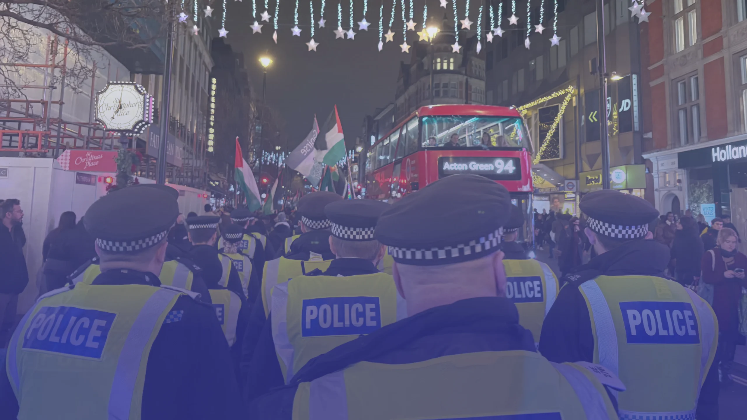 وفي تشرين الثاني/نوفمبر، أجبرت الشرطة «تحالف فلسطين» على تغيير مسار مسيرته قبل ثلاثة أيام فقط من موعدها، بحجة الأثر التراكمي على الأنشطة التجارية خلال عطلة «الجمعة السوداء»، رغم أن المسار ذاته لم يُستخدم منذ أكثر من عام، بحسب المنظمين.