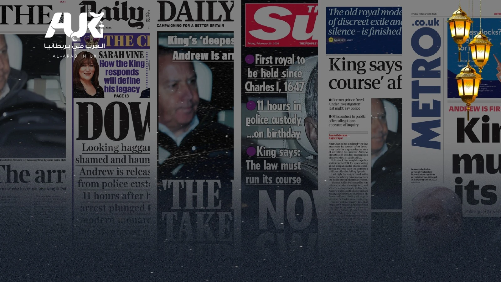 هيمنت صورة واحدة لأندرو الذي جُرِّد من جميع ألقابه على الصفحات الأولى لمعظم الصحف الصادرة في بريطانيا، في مشهد يوثق لحظة توقيفه ثم الإفراج عنه بشبهة إساءة استخدام المنصب العام. وتصدرت تعليقات الملك بشأن الواقعة عناوين عدة صحف، وسط تحليلات تتحدث عن تداعيات واسعة النطاق على المؤسسة الملكية.