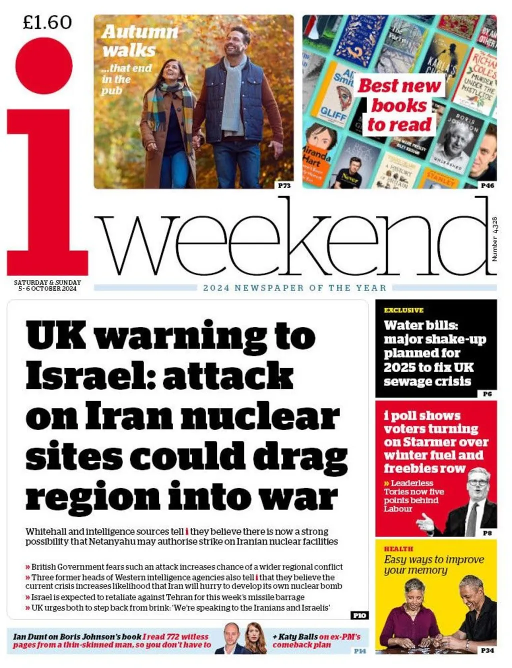 إليكم أبرز ما ورد في عناوين الصحف البريطانية ليوم السبت 5 تشرين الأول/أكتوبر 2024: