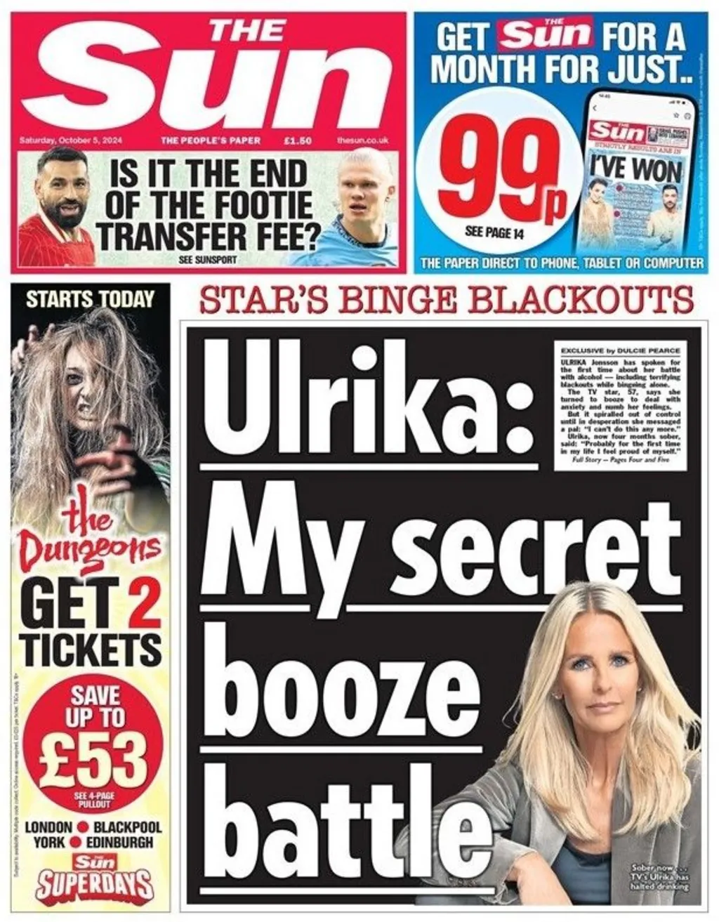 تحدثت المذيعة التلفزيونية السويدية البريطانية أولريكا جونسون لصحيفة “الصن” عن معاناتها من الإدمان على الكحول، وقالت إنها عانت سابقًا من حالات الإغماء المفاجئة نتيجة الإدمان على الكحول.