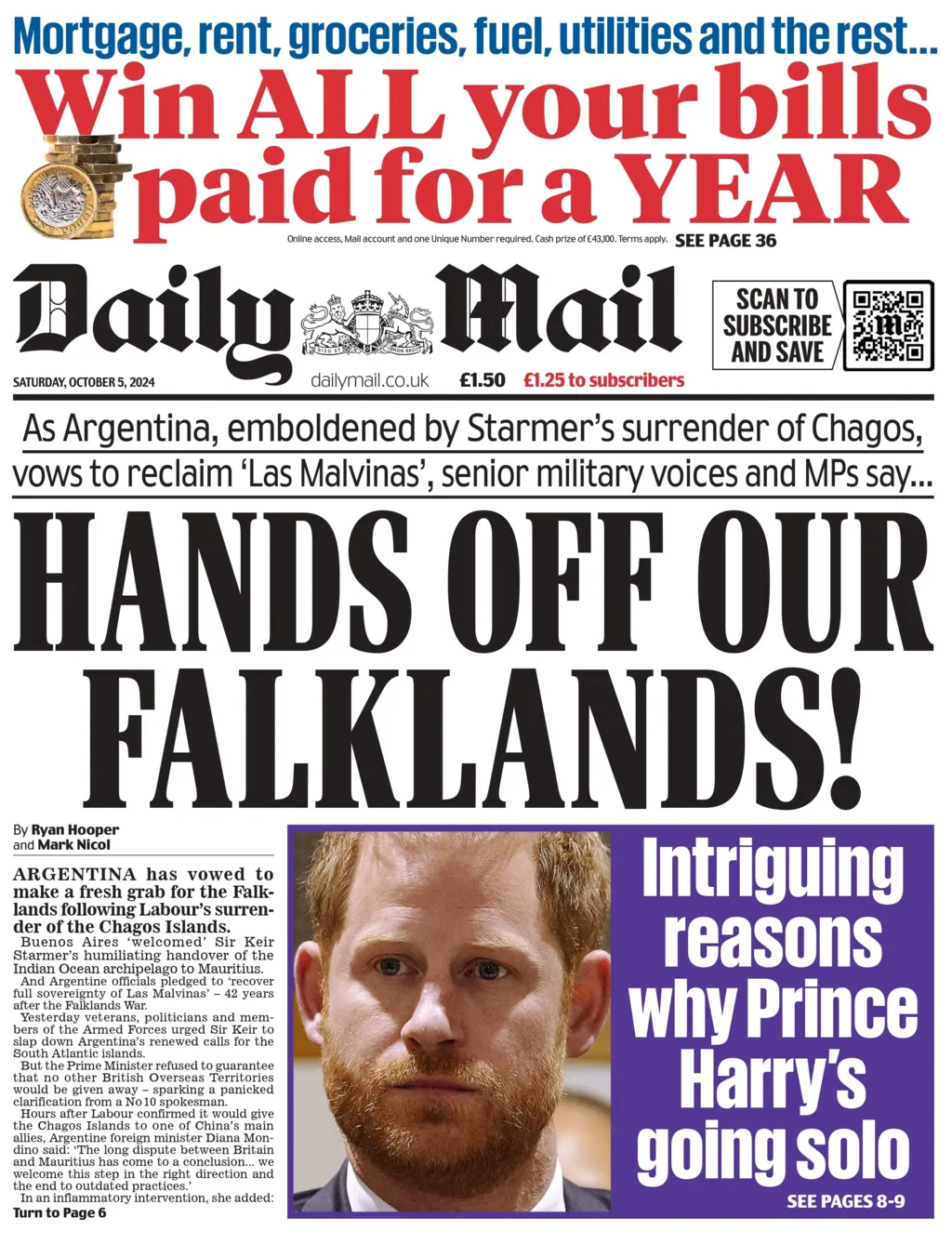 أشارت صحيفة “ديلي ميل” إلى أن الأرجنتين تخطط للاستيلاء مجددًا على جزر فوكلاند، في أعقاب قرار الحكومة البريطانية بالتنازل عن السيادة على جزيرة دييغو غارسيا لصالح موريشيوس.