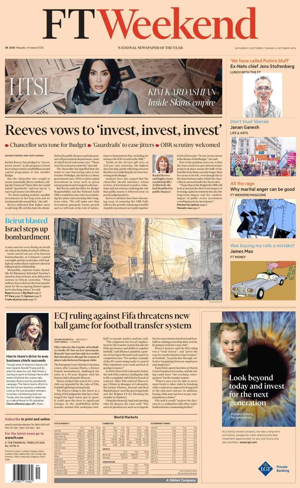 أبرز عناوين الصحف البريطانية ليوم السبت 5 أكتوبر 2024