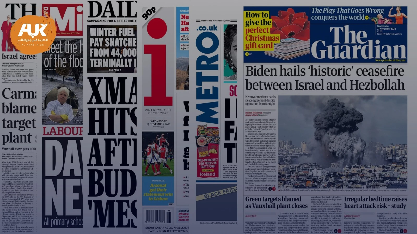 هيمنت حالة من الارتباك الخدمي والقلق الأمني والاقتصادي على عناوين الصحف البريطانية في اليوم الأخير من عام 2025، مع تداخل أخبار النقل والطوارئ، والسياسة الداخلية، وقضايا العدالة والأمن القومي.