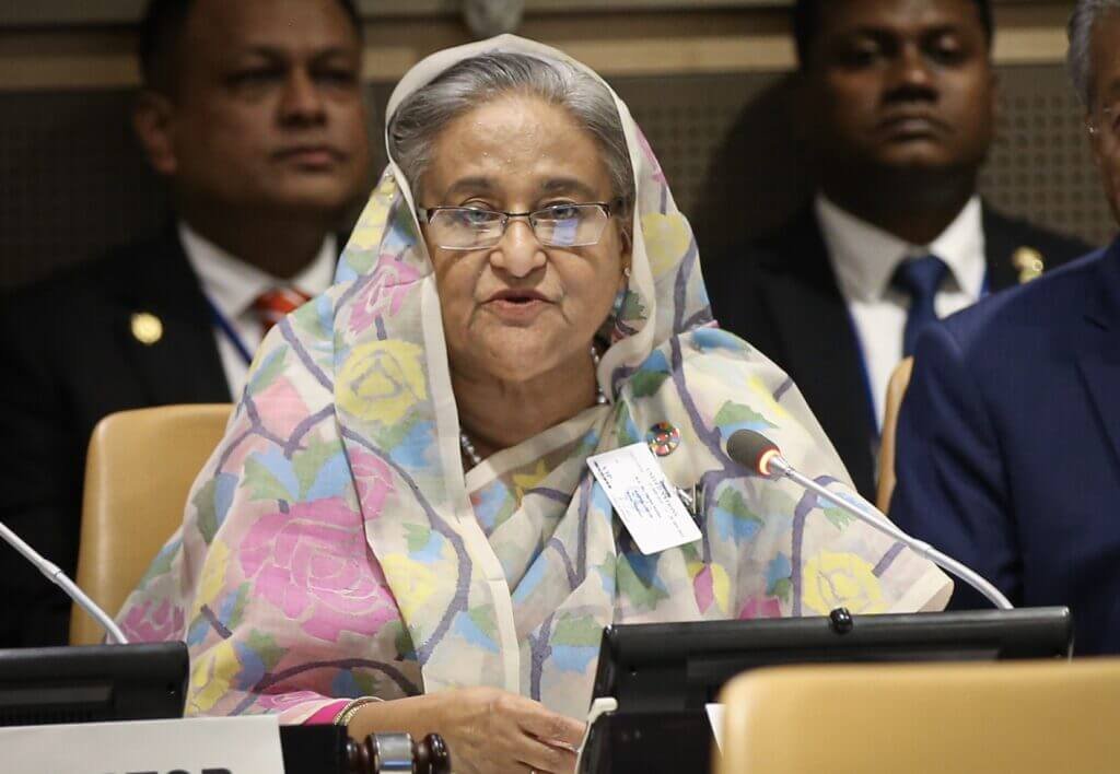 تتحدث رئيسة وزراء بنغلاديش نيابة عن “منتدى المناخ الهش”، وهو تجمع من 48 دولة من أكثر البلدان المهددة بتغير المناخ.