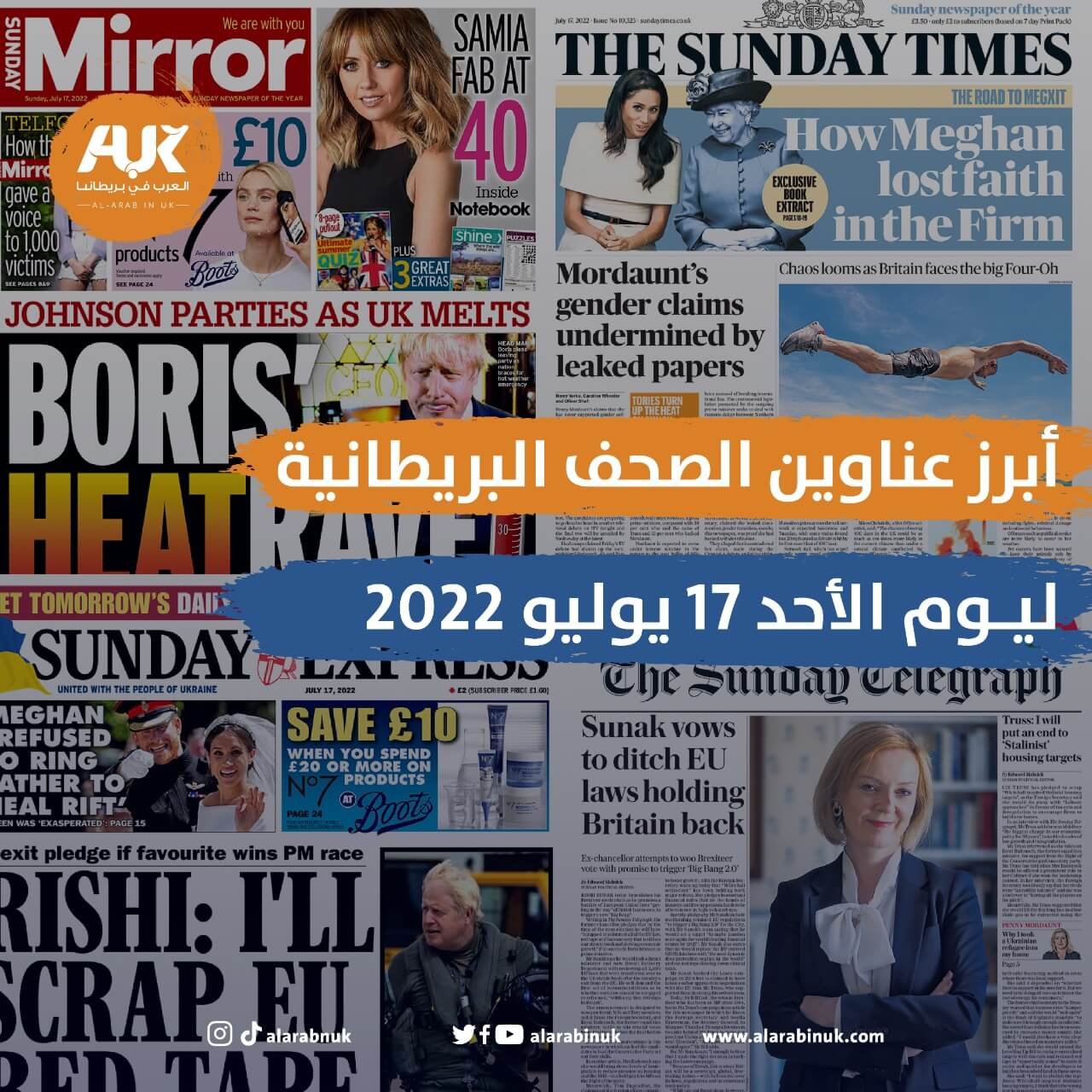 إليكم أبرز ما ورد في عناوين الصحف البريطانية ليوم الأحد 17 حزيران/ يونيو 2022 :