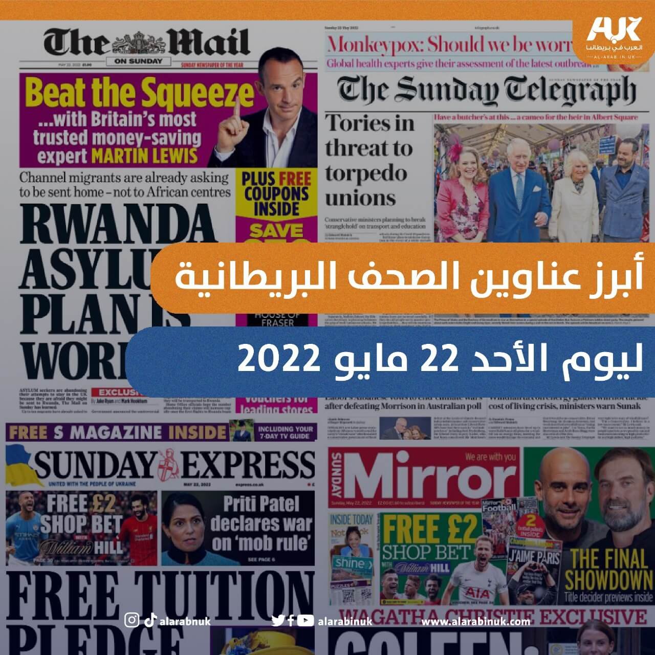 أبرز عناوين الصحف البريطانية ليوم الأحد 22 مايو 2022