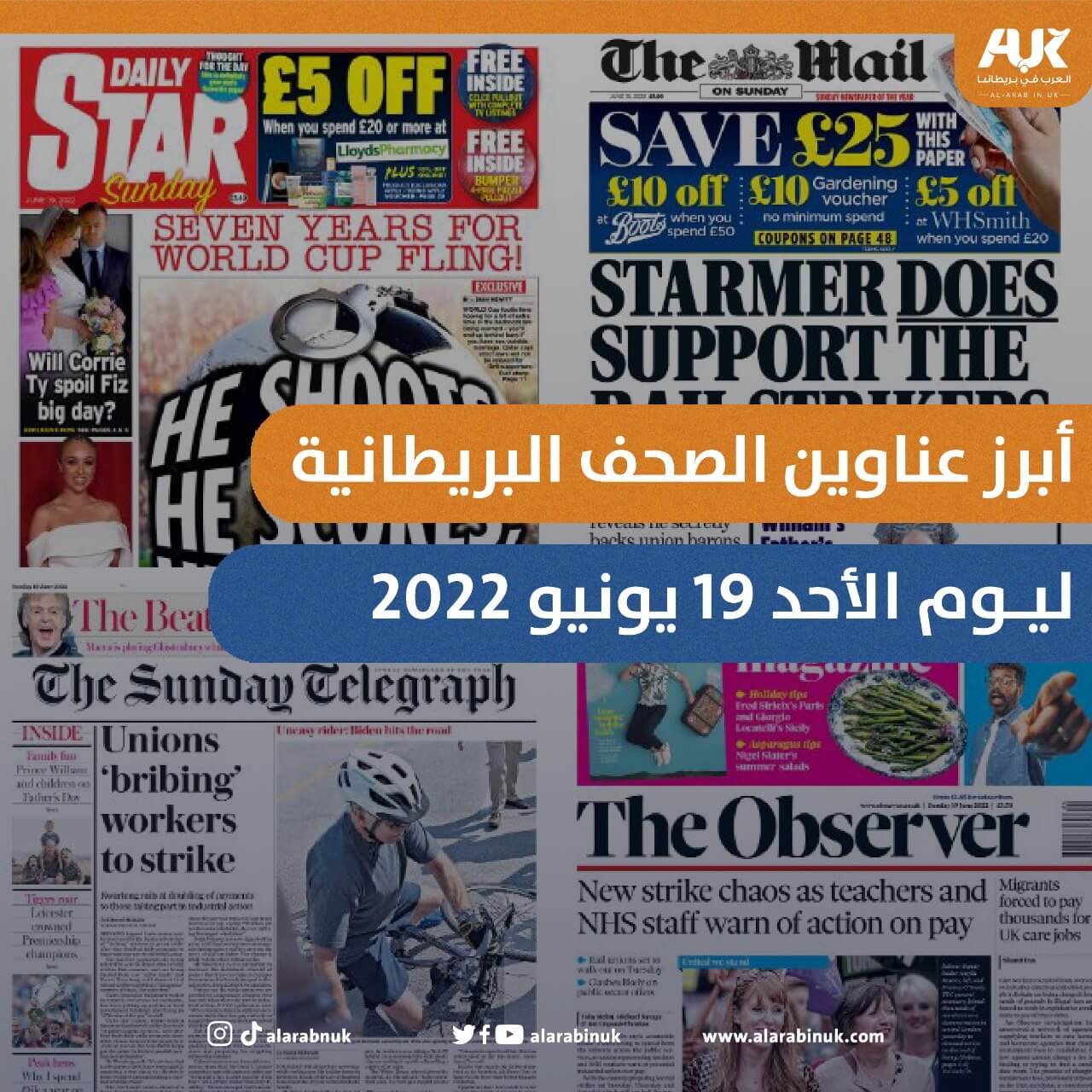 أبرز عناوين الصحف البريطانية ليوم الأحد 19 يونيو 2022