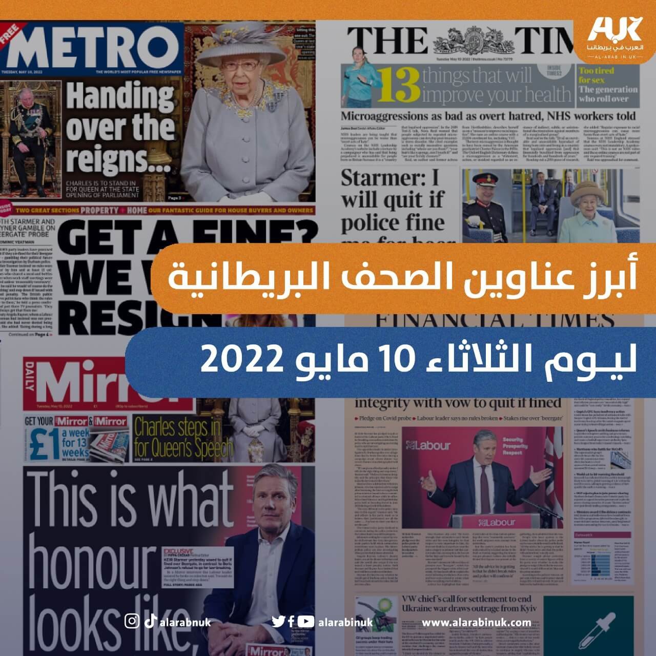 أبرز عناوين الصحف البريطانية ليوم الثلاثاء 10 مايو 2022