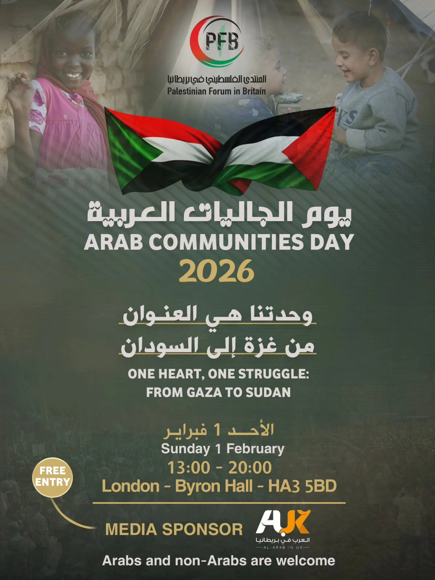 The Palestinian Forum in Britain (PFB) has announced a new community event, Arab Communities Day 2026, set to take place in London on Sunday 1 February.